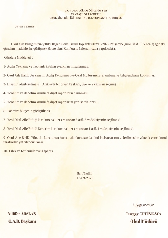 OKUL AİLE BİRLİĞİ GENEL KURUL TOPLANTISI